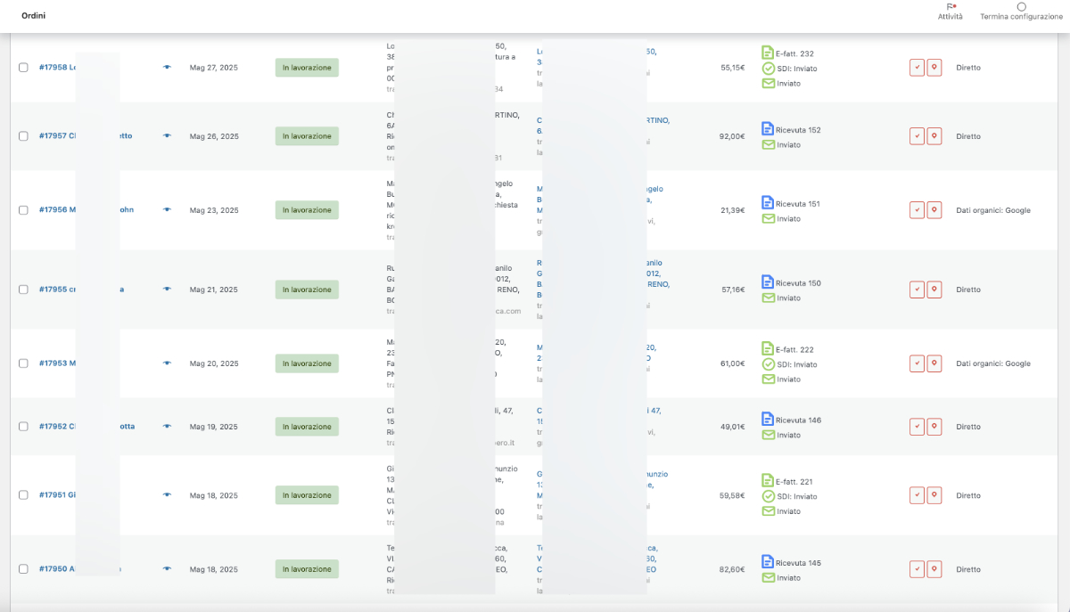 Sarà presente una nuova colonna all’interno della sezione Ordini WooCommerce che mostra il documento associato all’ordine in modo carino: