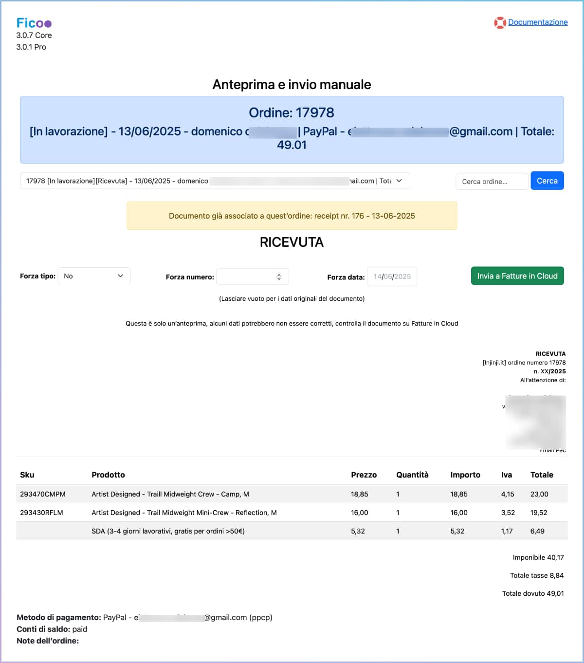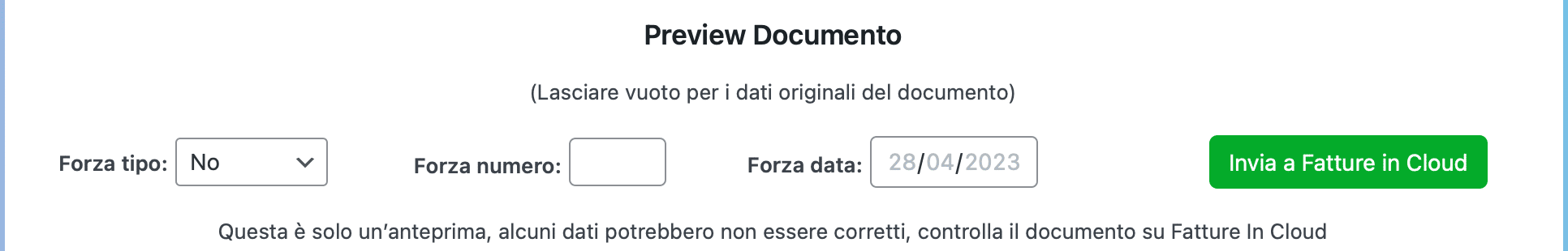 Per creare il documento è sufficiente come il tasto” Invia a Fatture In Cloud”.